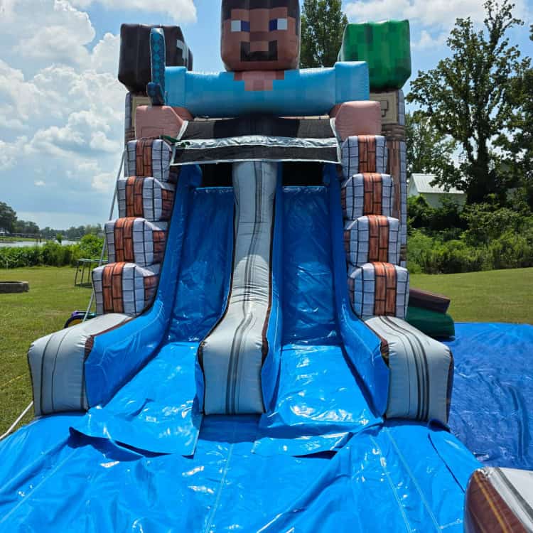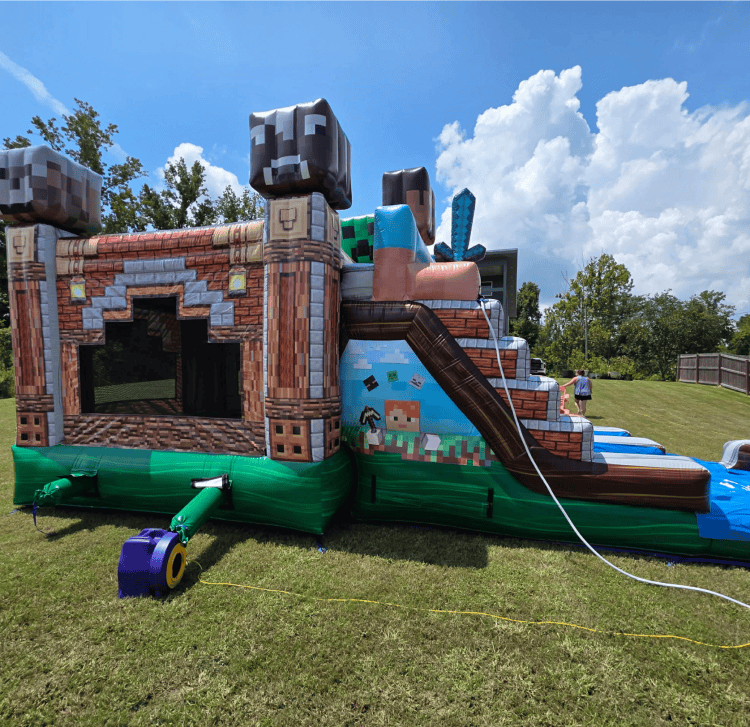Perfect for birthdays, gamer-themed parties, or school events, the Mindcraft Combo brings digital adventure to life right in your backyard. Whether used wet or dry, it guarantees hours of excitement for kids who love to jump, climb, and slide!