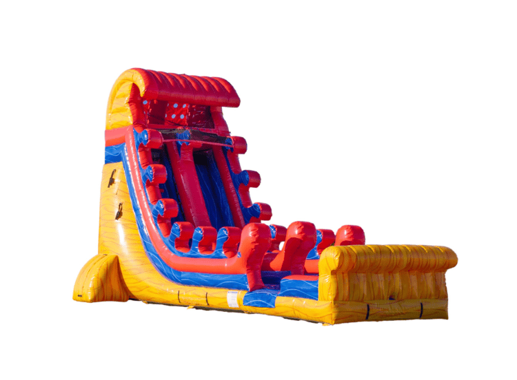 Turn up the excitement with Lava Falls, our towering 20ft single-lane water slide that’s bursting with bold island vibes! Climb to the top, then race down the fiery red and blue slide before splashing into a refreshing pool below. With its striking lava-inspired design, Lava Falls steals the show at any event.